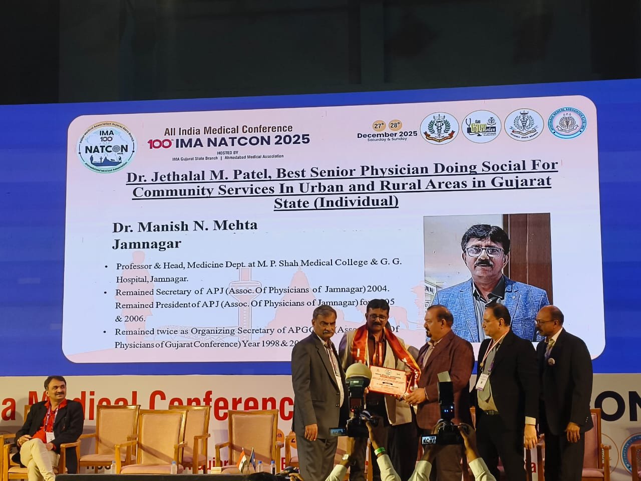 આ કોન્ફરન્સ દરમિયાન જામનગરની જીજી હોસ્પિટલના મેડીસીન વિભાગના વડા ડો.મનીષ એન. મહેતાને સિનિયર ફિઝિશિયન સોશિયલ ફોર કોમ્યુનિટી (અર્બન અને રૂરલ એરિયા)માં બેસ્ટ પ્રેક્ટિસનર તરીકે વિશેષ સન્માન આપવામાં આવ્યું હતું, શહેરી તેમજ ગ્રામ્ય વિસ્તારોમાં વર્ષોથી સમાજસેવી તબીબી સેવા આપી આરોગ્ય ક્ષેત્રે મહત્વપૂર્ણ યોગદાન આપ્યું છે. તેમના આ સેવાભાવ અને નિષ્ઠાપૂર્ણ કાર્ય બદલ તેમને આ ગૌરવપૂર્ણ સન્માન આપવામાં આવ્યું હતું.આ સિદ્ધિથી જામનગર અને એમ.પી. શાહ મેડિકલ કોલેજ અને જી.જી હોસ્પીટલનું નું નામ રાજ્ય સ્તરે ગૌરવપૂર્વક ઉજાગર થયું છે. મહત્વનું છે કે આ પરિષદમાં ગુજરાતભરના વિવિધ નામાંકિત અને પ્રતિષ્ઠિત તબીબોને તેમના ઉત્તમ કાર્ય બદલ સન્માનિત કરવામાં આવ્યા હતા.