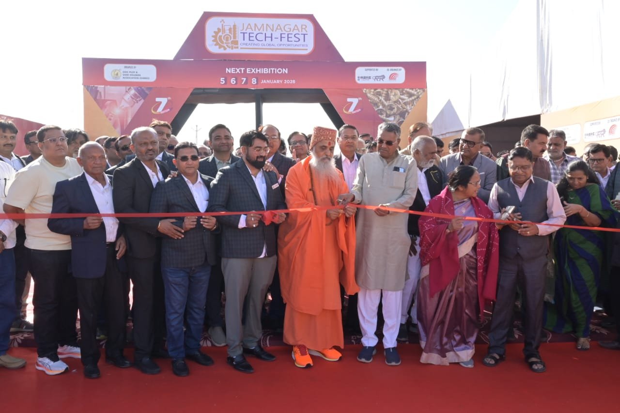 જામનગરના જી.આઈ.ડી.સી. વિસ્તારમાં આયોજિત આ મેગા ફેરના ઉદ્ઘાટન સમારોહમાં રાજકીય નેતાઓ, ઔદ્યોગિક સંગઠનોના હોદ્દેદારો અને ઉદ્યોગકારો મોટી સંખ્યામાં ઉમટી પડ્યા હતા, જેનાથી સમગ્ર વાતાવરણ ઉત્સાહ અને નવી આશાઓથી છવાઈ ગયું હતું.આ મેગા ઈવેન્ટનો વિધિવત પ્રારંભ શ્રી પ નવતનપુરીધામ ખીજડા મંદિર ટ્રસ્ટના મહંત અને પૂજ્ય આચાર્ય શ્રી કૃષ્ણમણીજી મહારાજના વરદ હસ્તે રીબીન કાપીને કરવામાં આવ્યો હતો, જે જામનગરના ઉદ્યોગો માટે આશીર્વાદ સમાન બની રહ્યું. રીબીન કટિંગ બાદ પૂજ્ય મહારાજશ્રી અને અન્ય મહાનુભાવોએ પ્રદર્શનમાં ઉભા કરાયેલા વિવિધ સ્ટોલ્સની રૂબરૂ મુલાકાત લીધી હતી અને ત્યાં પ્રદર્શિત કરાયેલી અદ્યતન મશીનરી તેમજ પ્રોડક્ટ્સ વિશે ઉંડાણપૂર્વક માહિતી મેળવી હતી.