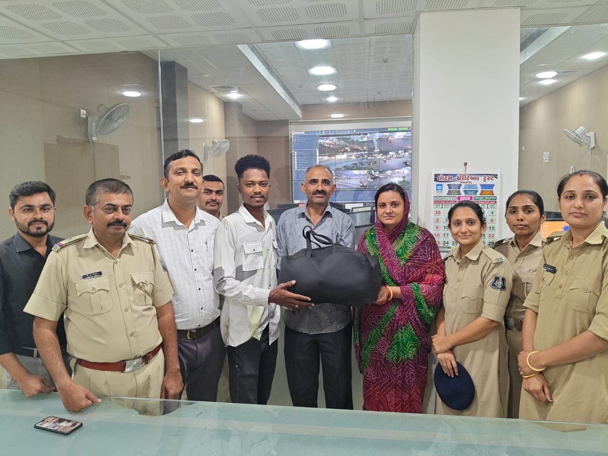 જે  રીક્ષા ચાલકનો RTO ડેટા ચેક કરતા રીક્ષાનો માલીક મોરબી જિલ્લાનો રહેવાસી હોય જેને ટેલીફોનીક વાત કરતા 8 મહિના પહેલા પોતાની રીક્ષા જામનગર ખાતે વેચી દીધેલ હોય તેવુ જણાવતા રીક્ષા પર LOUK 2 લખેલ હોય તેમજ તેની CCTV મુવમેન્ટ જોતા સાંજના સાડા છ વાગ્યે આ રીક્ષા રેલ્વે સ્ટેશન બ્રીજ તરફ ગયેલ હોય તેવુ જણાતા તે વિસ્તારમાં જઇ હ્યુમન સોર્સ તથા બાતમી રાહે હકીકતના આધારે રીક્ષા ચાલકને શોધી રીક્ષા ચાલક પાસેથી થેલો મેળવી જેમના દાગીના ભરેલ થેલો હતો તેને કમાંડ એન્ડ કંટ્રોલ રૂમની ટીમ દ્વારા પરત કરવામાં આવ્યાનું જાહેર થયું છે.